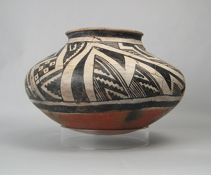 Soil in the ground contains rocks and minerals. Ceramics (pottery) are made of clay which also contains rocks and minerals. Scientists can compare the rocks and minerals in broken pieces of pottery, called sherds, with those found in clay from many different places. This is called petrographic analysis. Archaeologists can then decide if pottery at an archaeological site was made using local clays. While most of the Salado decorated pottery at Ormand Village was made from local clays, one sherd was made from clay obtained from the Tucson Basin area (see the Salado Homeland on the regional map).