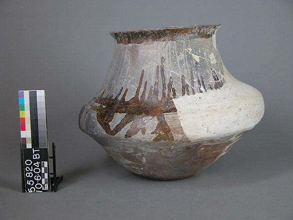 After the pots were reconstructed from sherds, there were usually some areas missing. These areas of loss range from small chips at the rim of the pots, to large losses comprising half of a pot, or more. In about 25% of the collection, these areas of loss have been filled in with plaster or other similar materials. These pots present a range of aesthetic problems such as over-painting of original surfaces, poorly executed and/or unnecessary fills, and excess oxidized (yellow–brown) adhesives. These condition issues do not affect the stability of the pot but affect the use of the collection for research, exhibit and education. These kinds of restorations are no longer acceptable in a research collection and are generally removed in favor of a more honest presentation of the pottery. Such condition problems converge with cultural perspectives on what is appropriate for these ceramics, how they should be presented, and ideas about preservation in general.
